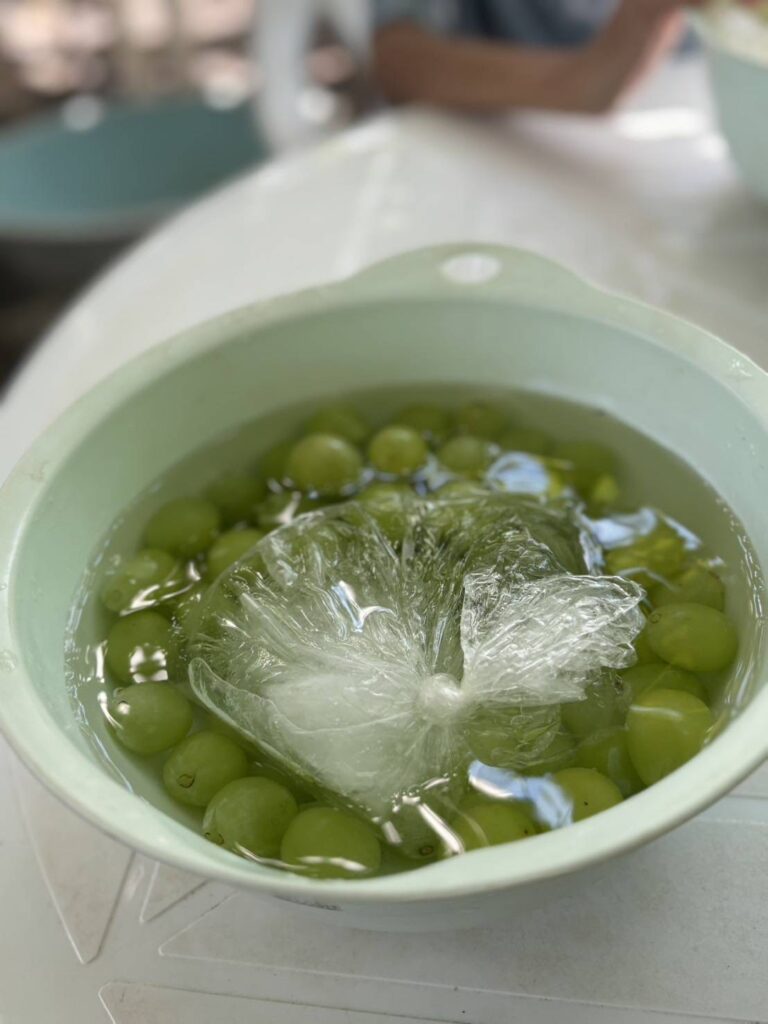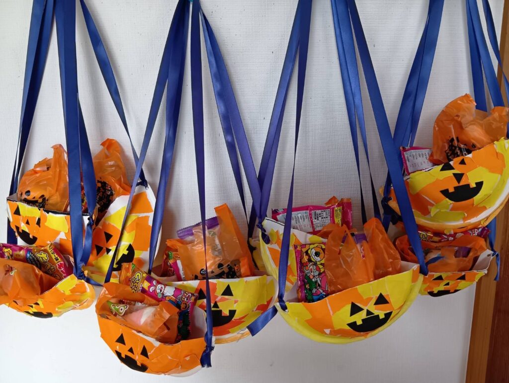 自作のバックにお土産のお菓子を詰めてもらってニコニコです。