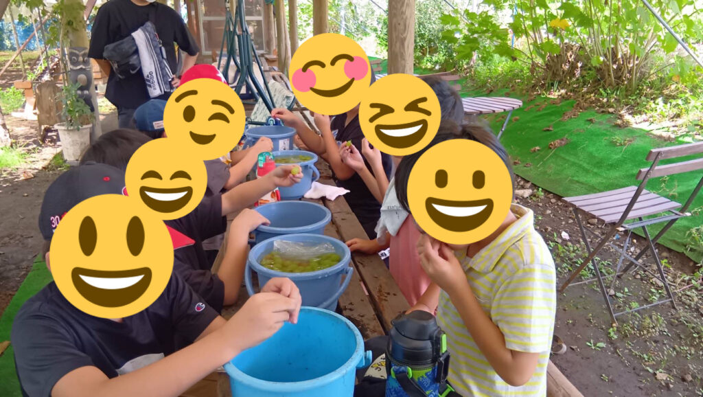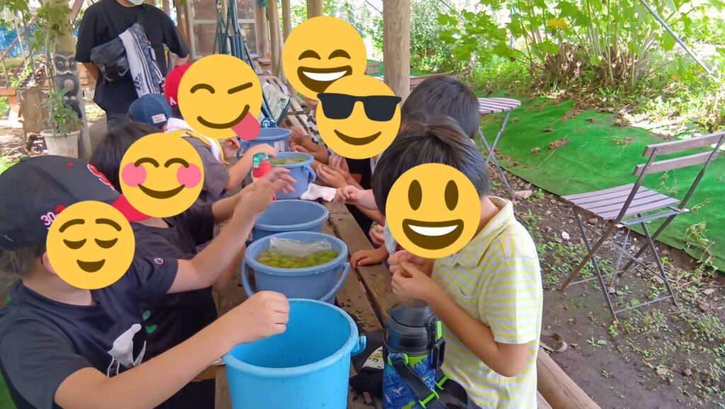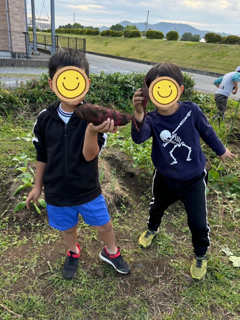 皆んなで育ててきたお芋が、土の中からたくさん顔を出し、いっぱい収穫できましたよ!